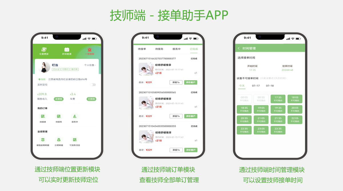 通过微信公众号/小程序/APP等都可下单, 足不出户即可享受服务。技师24小时到家服务,预约时间准时抵达